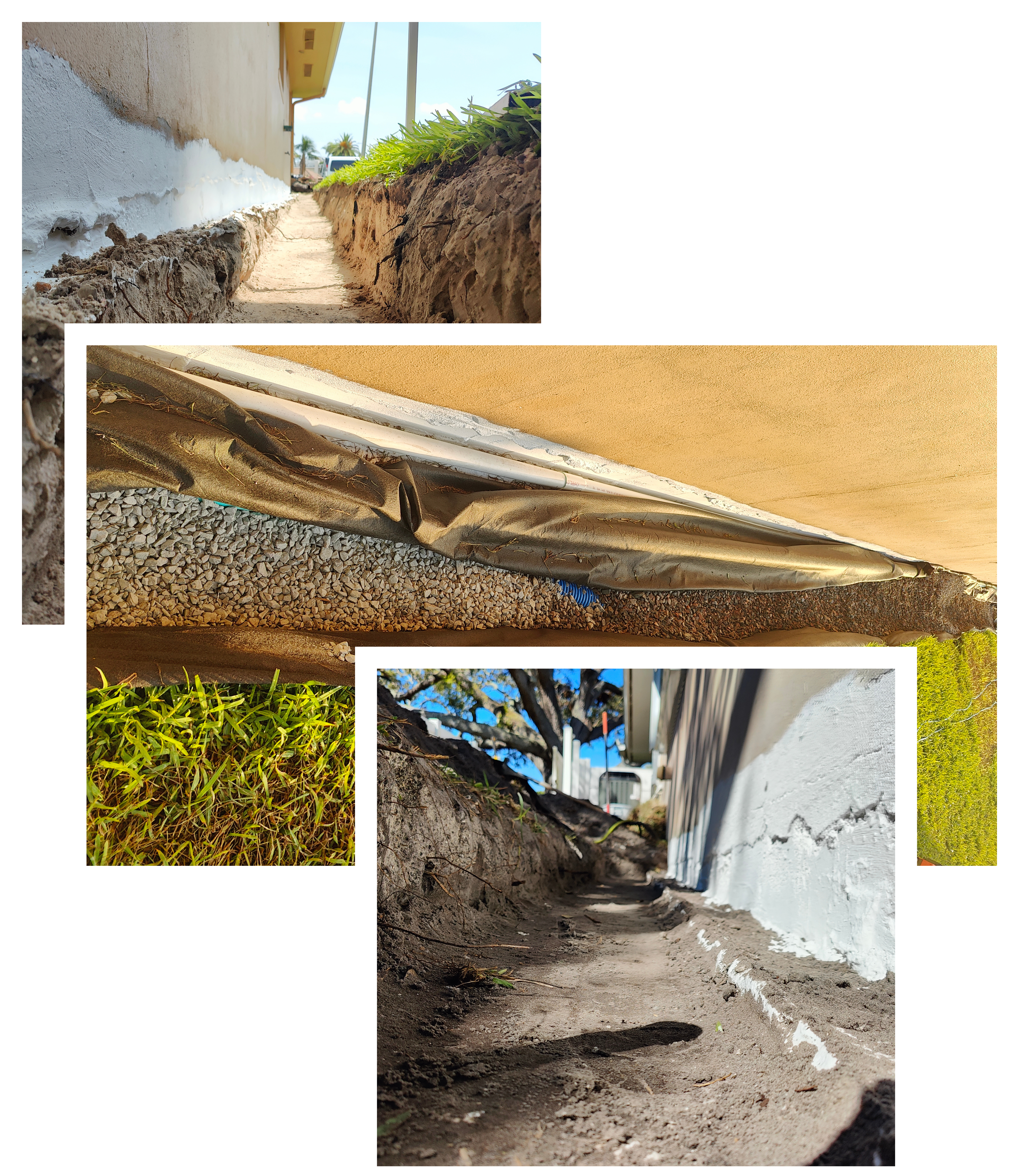 Drainage system built to relieve groundwater pressure along the foundation line