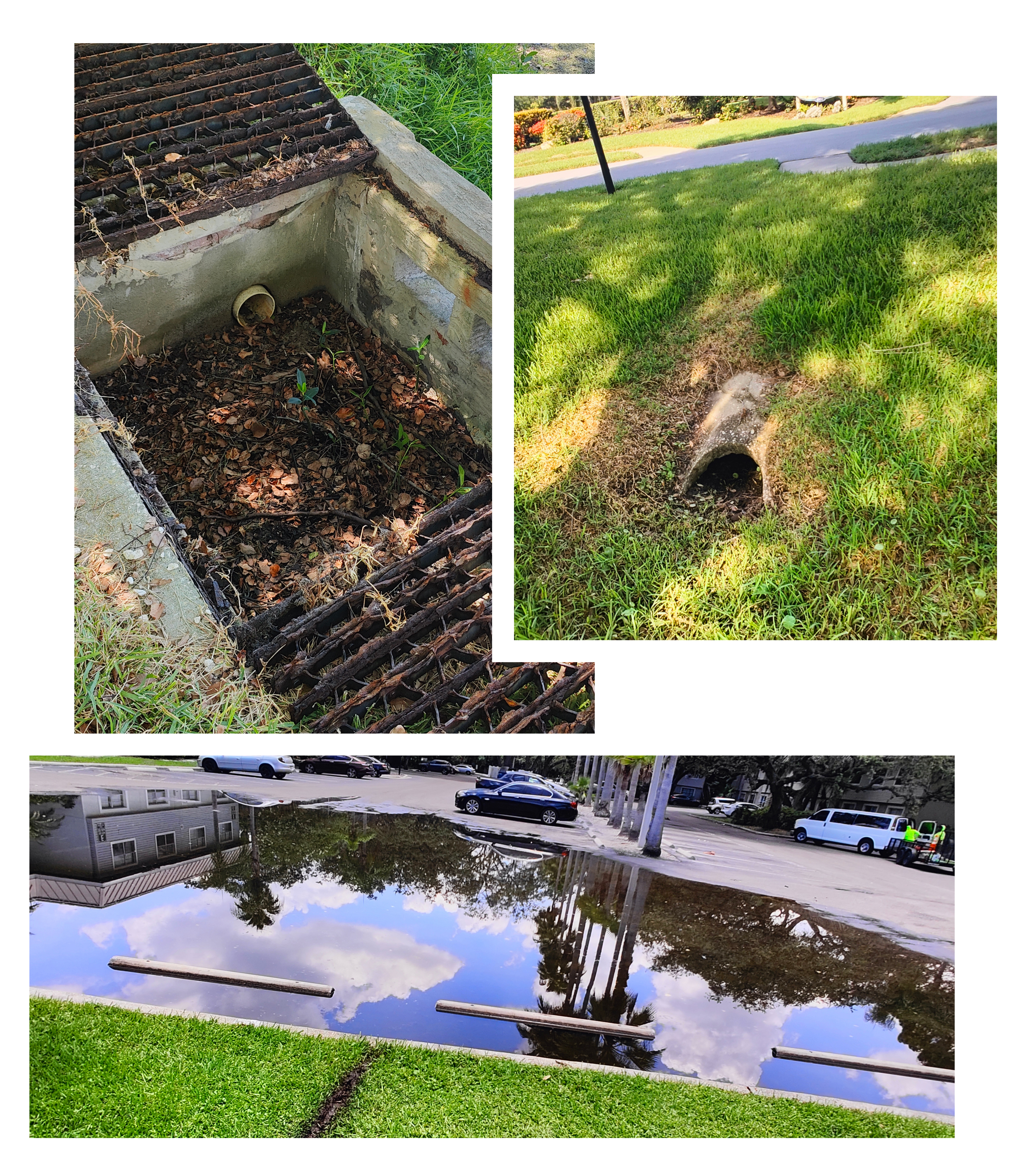 Parking lots and drive lanes hold water after normal rain
